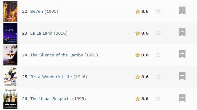 على سبيل المثال فإن الكثيرين يعتقدون أن أورسون ويلز المواطن كين هو أفضل فيلم من أي وقت مضى ويبدو كما 1 على قائمة أفضل أفلام afi في حين أن الخلاص من شاوشانك هو رقم 1 على قاعدة بيانات الأفلام على الإنترنت أعلى 250 في حين. أحدث الأفلام المنضمة إلى لائحة imdb الشهيرة لأفضل 250 فيلم في التاريخ. فيلم the godfather.