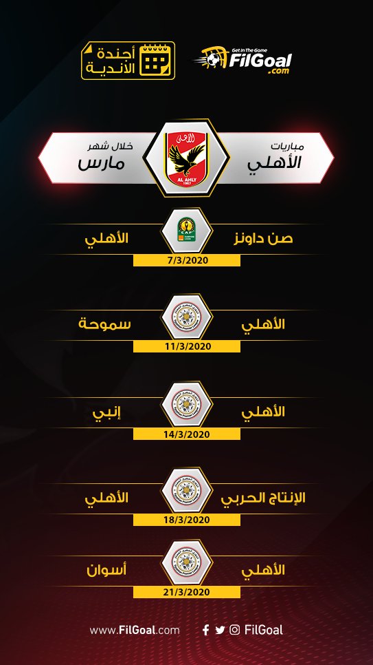 جدول مباريات الدورى المصرى 2019 2020. موعد مباريات الاهلى مباريات الاهلى فى الدورى و الكأس و افريقيا نتائج مباريات الاهلى جو اهلى متابعات و احصائيات لمباريات النادى الاهلى مواعيد مباريات الاهلى و ميعاد المباراة القادمة.