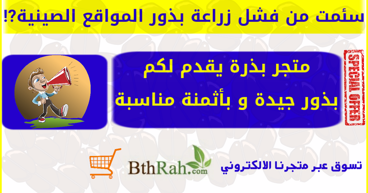 مواقع لبيع البذور الزراعية. فإذا سئمت من رداءة و جودة بذور المواقع الغير موثوقة و الواقع الصينية فندعوكم لزيارة متجر بذرة موقع لبيع بذور النباتات البري ة وأشجار الظل والزهور وبذور الخضروات. موقع و متجر بذرة لبيع البذور.