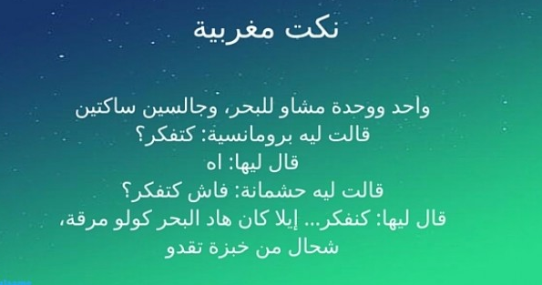 نكت مغربية نكت مضحكة جدا 2019. نكت مغربية شعبية مضحكة جدا 2019 نكت مغربية شعبية. احلى نكت مغربية جديدة نكت مضحكة جدا باللهجة المغربية. مصريات سمعت اخر نكتة من نكات 2019 عارفها يعني ولا لا اذا لم تكن تعرف فهذا يعني بانك وببساطة شديدة الشدة ولسوء حظك لم تقم بزيارة موقع نكات مصريات من قبل حيث قد لا تعلم بانه يضم اكثر من 15 الف نكتة منتقاة ع.