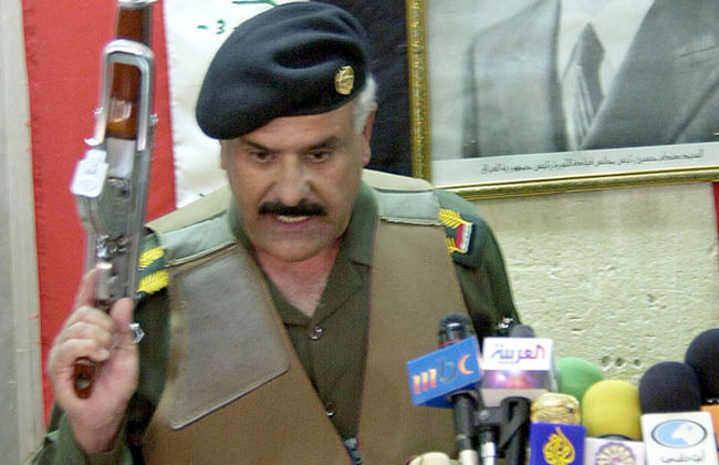 بالفيديو شاهد اقتحام وزير الداخلية العراقي مؤتمر الصحاف بالرشاش والهتاف للرئيس صدام حسين موقع الرئيس صدام حسين المجيد