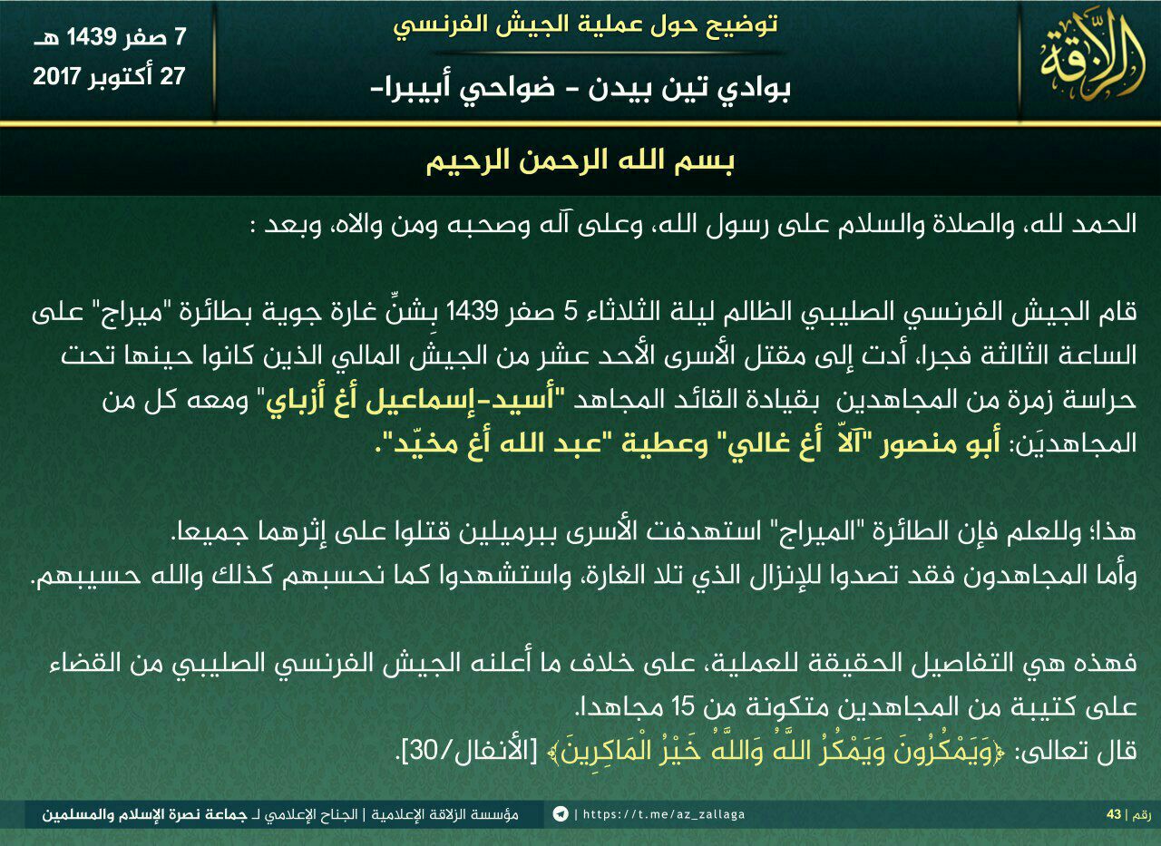 Menastream On Twitter Mali Breaking Official Statement By Jnim S Al Zallaqa Media Announcing The Death Of 11 Malian Soldiers 3 Guards Amidst Barkhane Raid Https T Co Fuzkdsacax